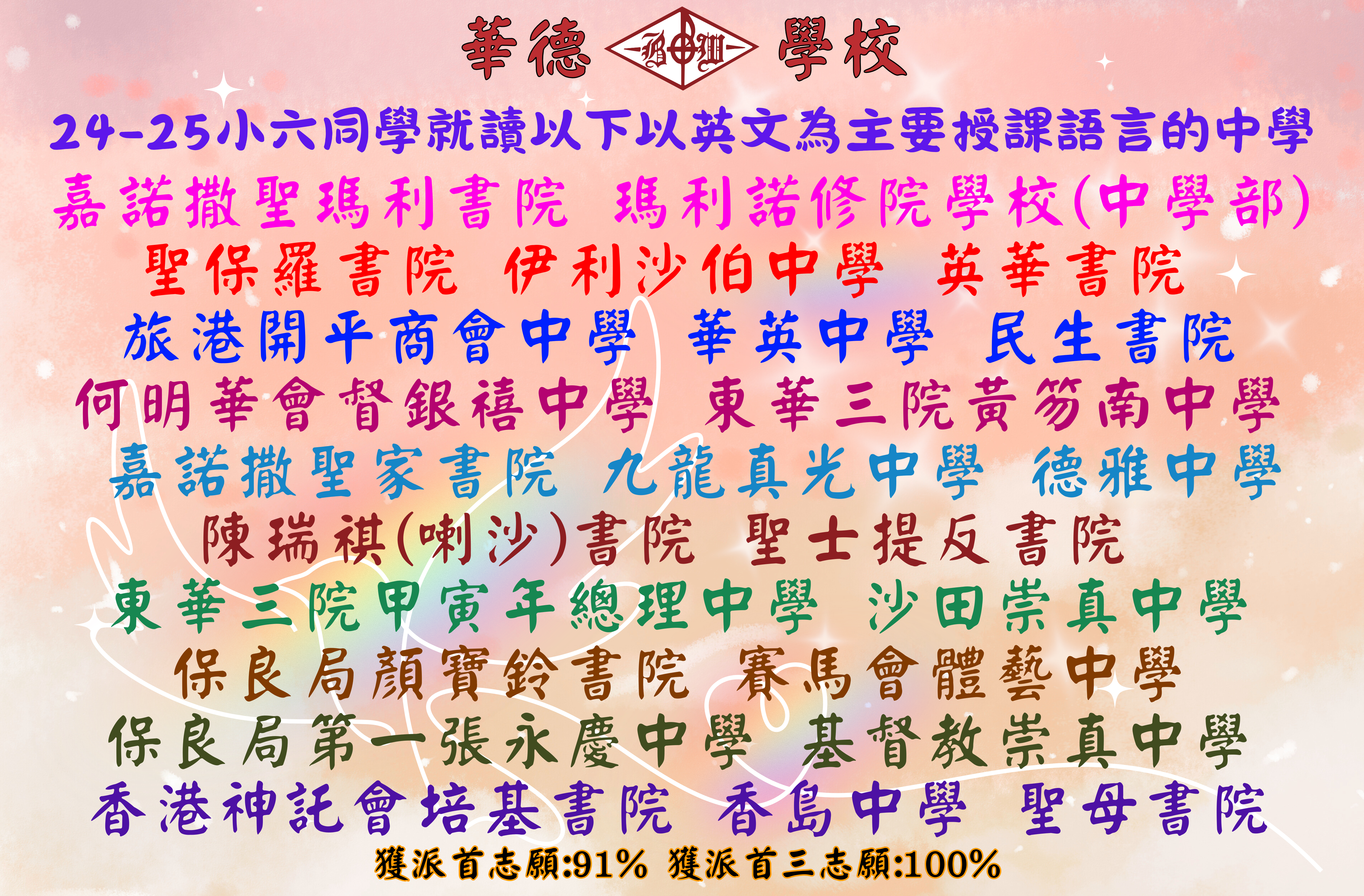 2024-2025年度中學學位分配,本屆六年級學生獲派之英語為主要授課語言的中學名單
