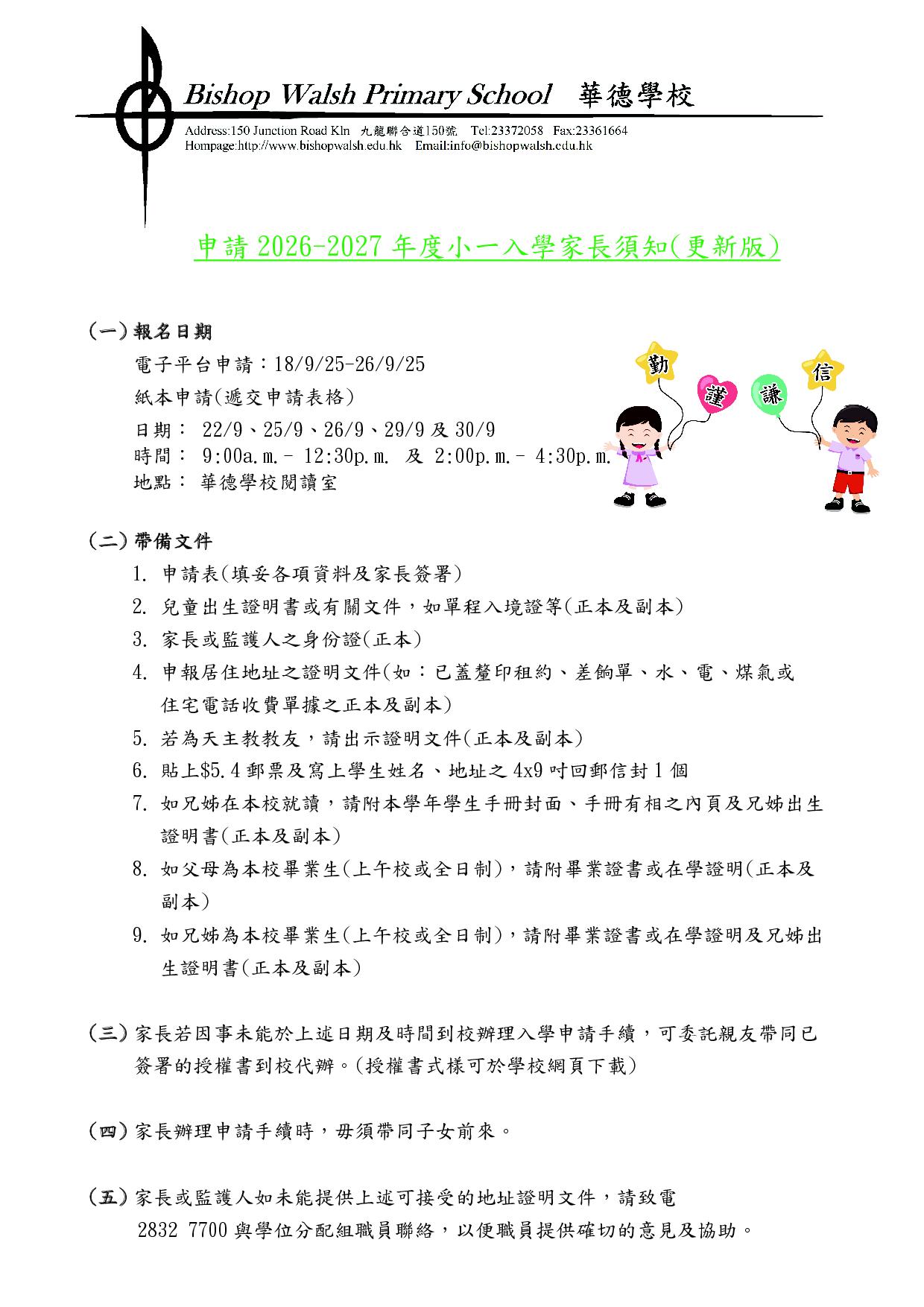 2026-2027年度小一入學家長須知
