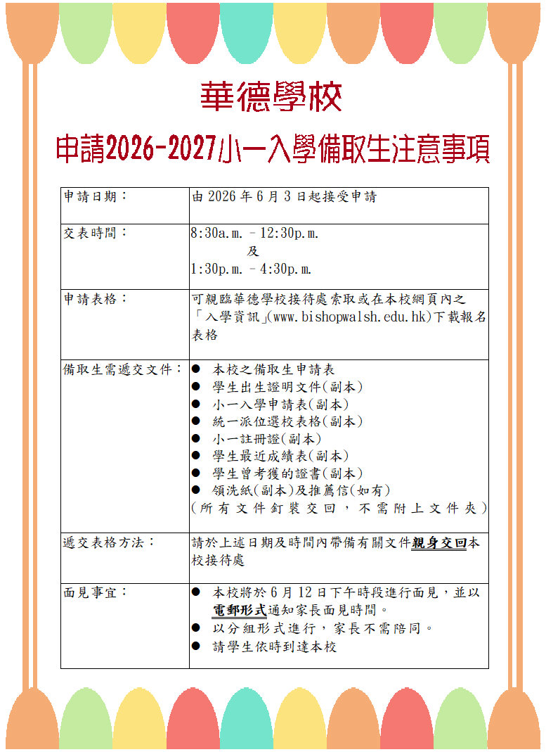 2026-2027 小一入學備取生注意事項